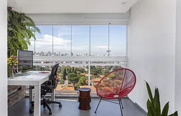 Varanda com home office - Projeto Korman Arquitetos / Foto JPImage