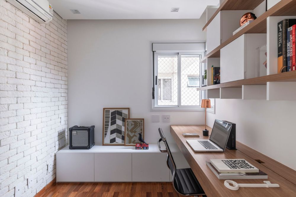 - Estantes e prateleiras: Organize seus livros, documentos e decorações sem ocupar muito espaço.