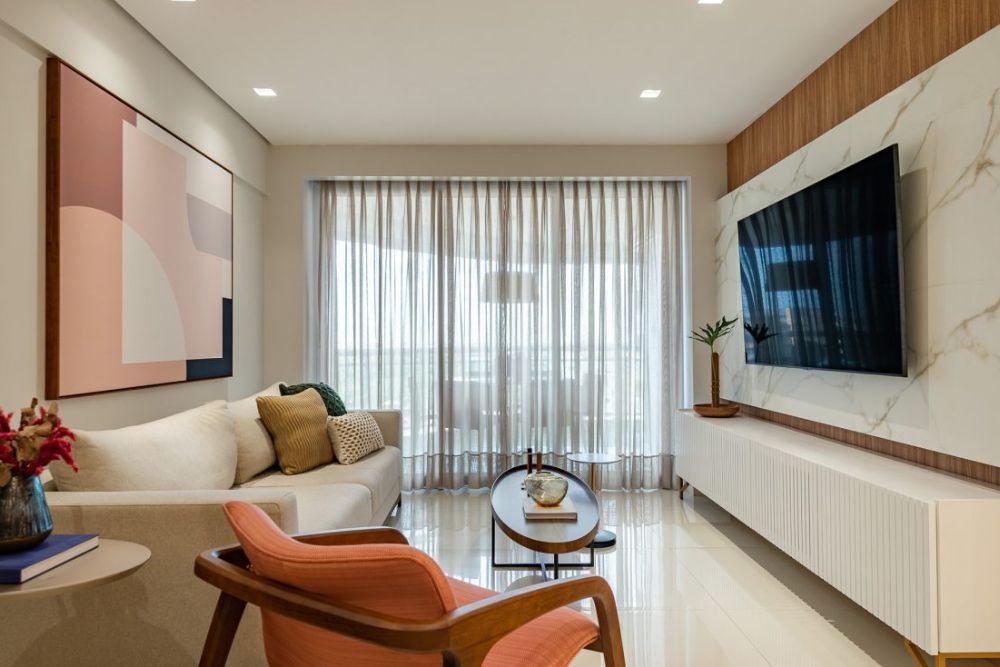 O porcelanato líquido é uma opção moderna e inovadora que está cada vez mais presente em projetos sofisticados. Ele cria uma superfície lisa e uniforme, sem rejuntes, com alta resistência e fácil limpeza. Ideal para ambientes comerciais ou áreas de grande circulação, como salas de estar.