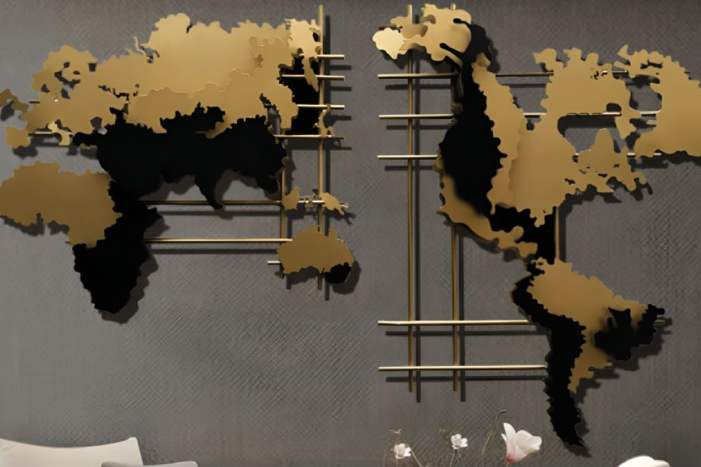 Mapas são formas de decoração utilizadas há muito tempo e sempre passam duas impressões: que a pessoa é culta ou que já viajou muito. De qualquer forma, eles sempre conferem uma impressão nobre ao ambiente. Quando feitos em metal, ganham ainda mais destaque. Além disso, não precisam ser totalmente verossímeis; o seu serralheiro pode adicionar um toque especial, criando um mapa mundi exclusivo e artístico.