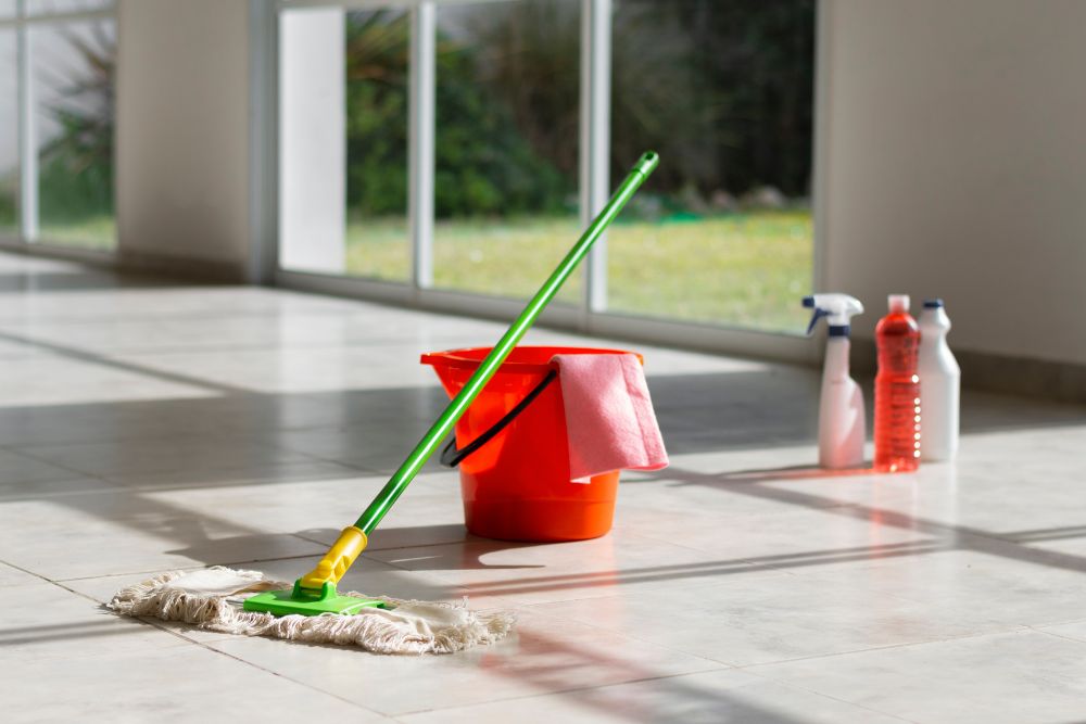 Depois de remover a sujeira solta, é hora de fazer uma limpeza pós obra úmida com segurança: