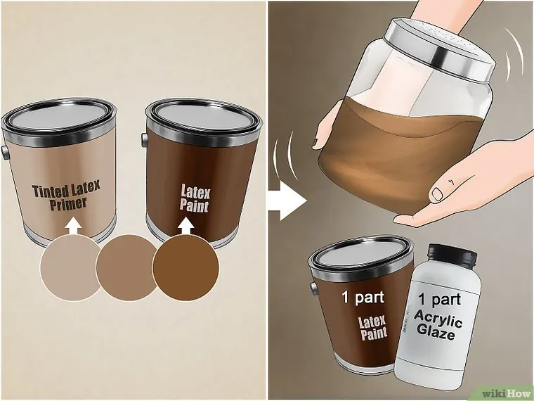 Escolha uma tinta acrílica que seja uns dois ou três tons mais escura que a aplicada anteriormente, misture-a com partes iguais de esmalte acrílico em um pote, feche-o bem, e chacoalhe para deixar a cor homogênea. O efeito ficará um pouco mais translúcido.