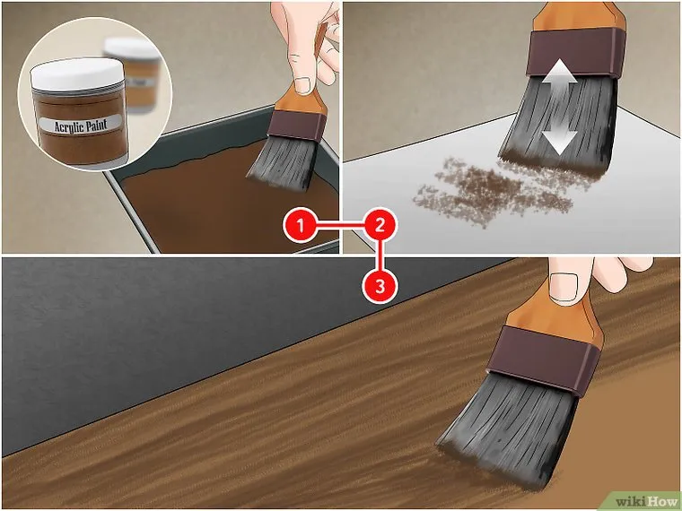 - Se quiser um efeito de madeira nova, use tons claros de amarelo e marrom. Para imitar madeira mais madura, use tons médios, e para as velhas, escuros.[15]