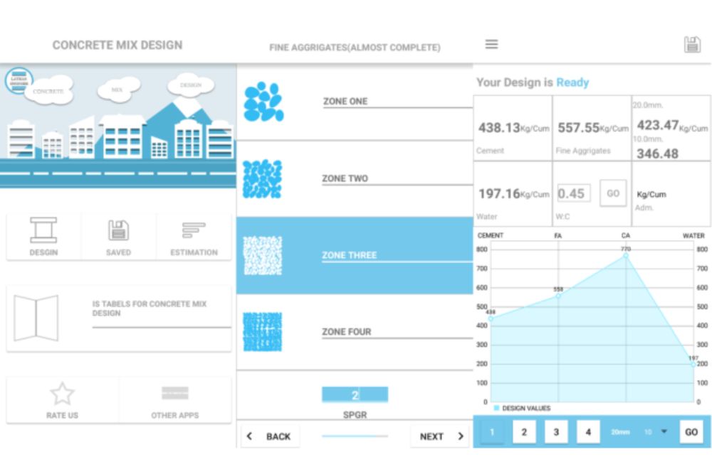 Com ele, é possível projetar as misturas para a produção do material por meio de uma calculadora com as quantidades de cimentos e agregados. Ele permite calcular as proporções de um concreto que use múltiplos agregados.