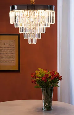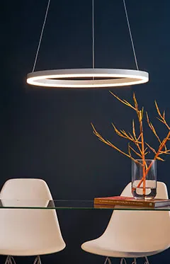 Lustres são peças imponentes e que conseguem iluminar o ambiente por completo. Para os pendentes, composições de diferentes modelos e tamanhos da mesma linha apresentam um ar mais despojado. Já os plafons são perfeitos para quem não quer arriscar, são produtos mais indicados para aqueles que preferem peças fixas por completo no teto.
