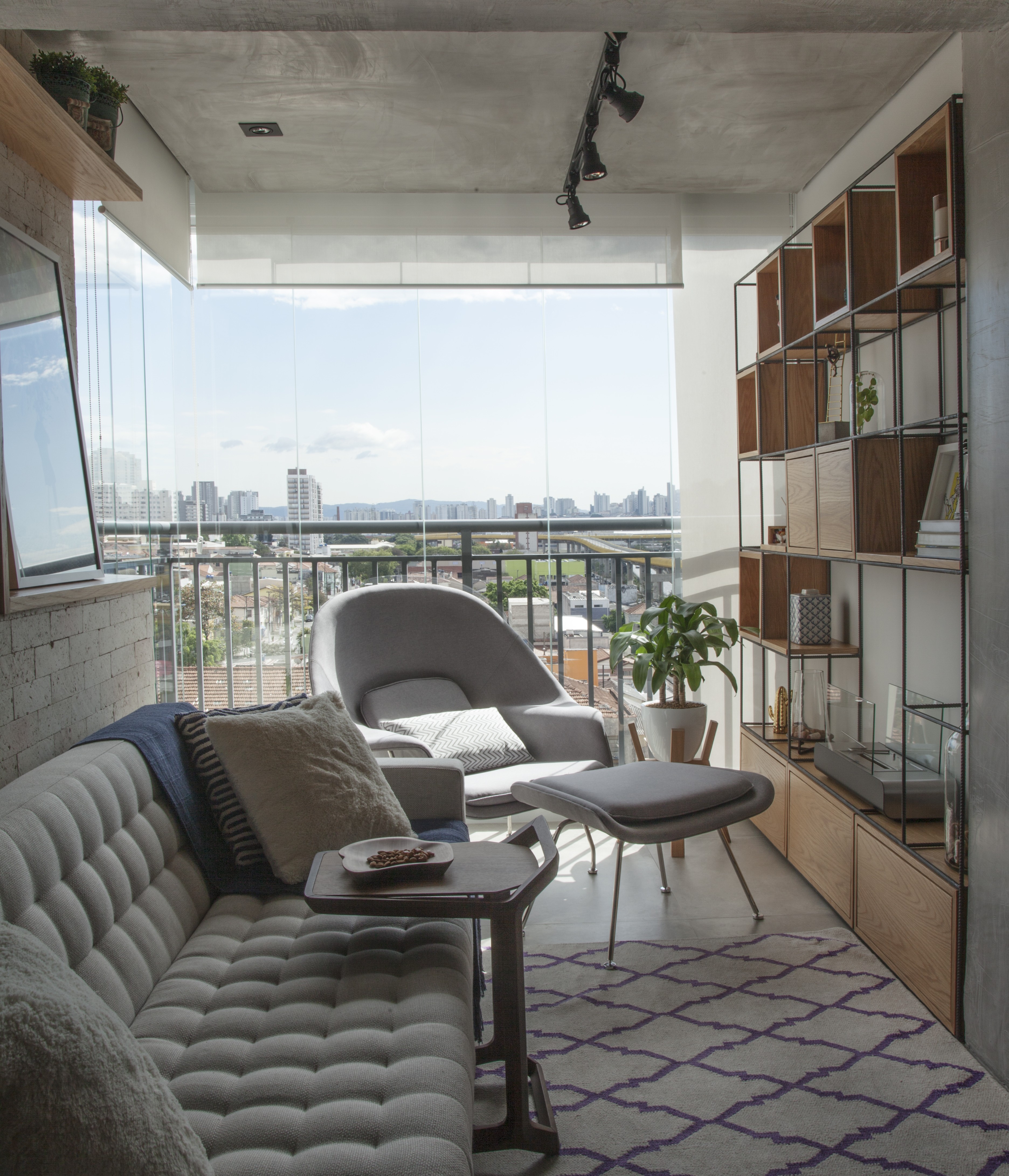 - Proteção e durabilidade: Outra grande vantagem, segundo Bruno, é a proteção contra intempéries, como chuva, vento e poeira, deixando o espaço mais fácil de manter. Além disso, muitas empresas oferecem proteção UV nos vidros, o que prolonga a durabilidade de móveis e objetos decorativos expostos na sacada.