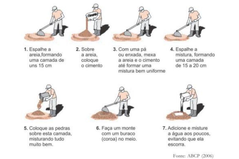 - 1:5:5 (1 balde de cimento, 5 de areia e 5 de pedra).