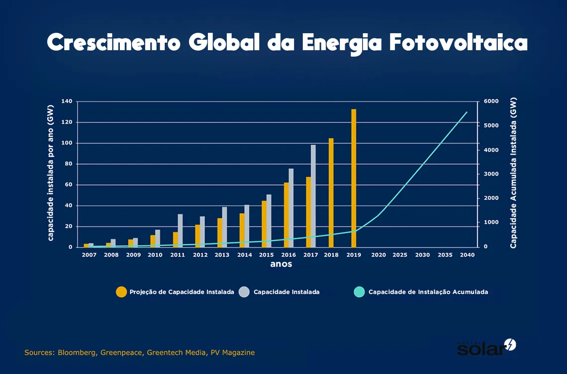 Crescimento do Mercado de Energia Fotovoltaica Produção de energia solar