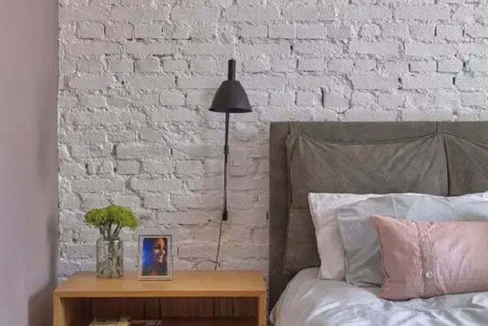 5. Parede de tijolos brancos trazendo luminosidade ao quarto