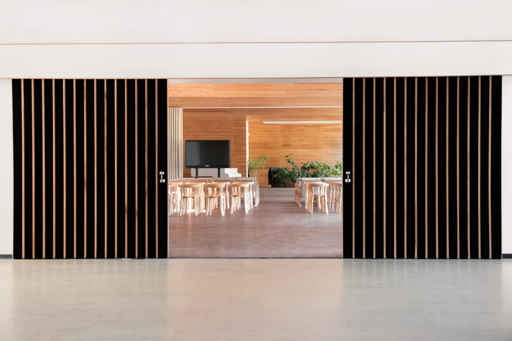 Apesar de não correr o risco de bater com o vento e não contar com dobradiças que podem fazer barulho, as portas de correr nem sempre oferecem um bom desempenho acústico. “Como nem sempre são mantidas completamente fechadas e possuem vãos entre peça e a parede, nem sempre é possível controlar a saída e a entrada de som entre os cômodos”, reforça Cristiane.