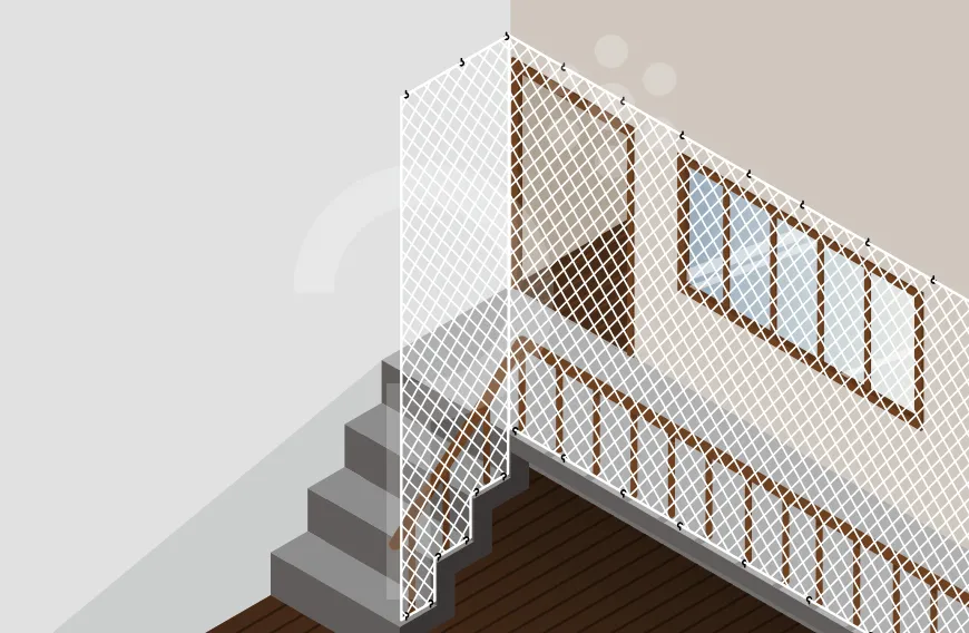 Se a rede de proteção para escadas visa somente proteger animais de estimação, basta fazer a instalação até o corrimão, não sendo necessário estender a tela até o teto. Mas se tiver a função de proteger crianças, existe o risco que ela escale a mureta. Nesse caso, então, é necessária a instalação da rede de proteção desde o chão até o teto.