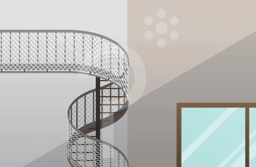 Se a escada tiver um design linear, a rede de proteção para escadas acompanhará o formato da escada. Mas se, por outro lado, a escada apresentar dois ou mais linhas de curvatura, a rede de proteção para escadas poderá: