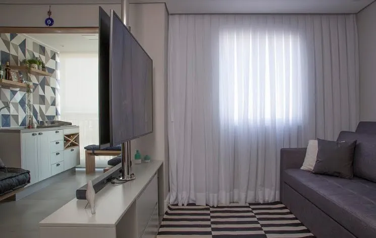 O trio é de extrema importância no projeto, tornando essencial a harmonia entre eles, além, é claro, de considerar o restante do mobiliário da sala, criando um centro de interesse. “Uma das dicas é que o tapete nunca deve ter a largura menor que o sofá, e o estofado deve ficar posicionado de maneira que converse com a circulação do ambiente. Já as cortinas devem ser escolhidas de acordo com a luminosidade incidente da janela, para que seu desempenho seja garantido”, explica.