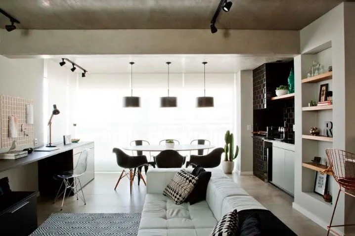 Ainda para áreas reduzidas, o arquiteto sugere o uso de tons neutros para as peças maiores, como paredes e sofá, como branco, bege, off-white, marfim, e até um cinza claro. “De forma geral, o ideal seria tomar cuidado com cores muito vivas e escuras, pois dessa forma o ambiente parecerá menor. Vale brincar com itens coloridos, porém em doses homeopáticas, nos itens de decoração”, diz.