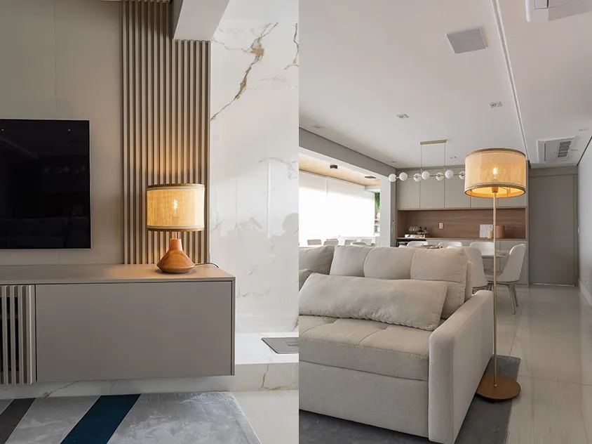 Luminárias de mesa e piso em projeto da arquiteta Daniela Funari | Fotos: Emerson Rodrigues